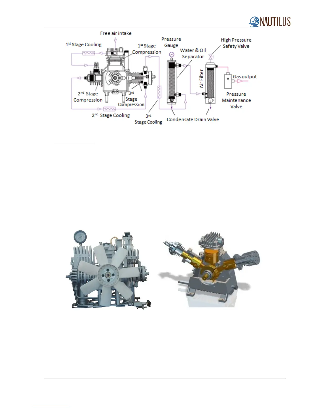 further compressed and cooled in order to transfer the gas into the third stage cylinder, where the gas is to be further