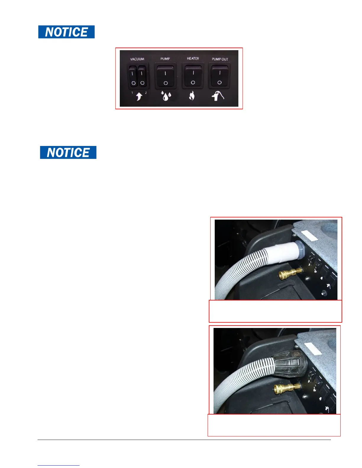 When ready to begin cleaning, turn both vacuum switches