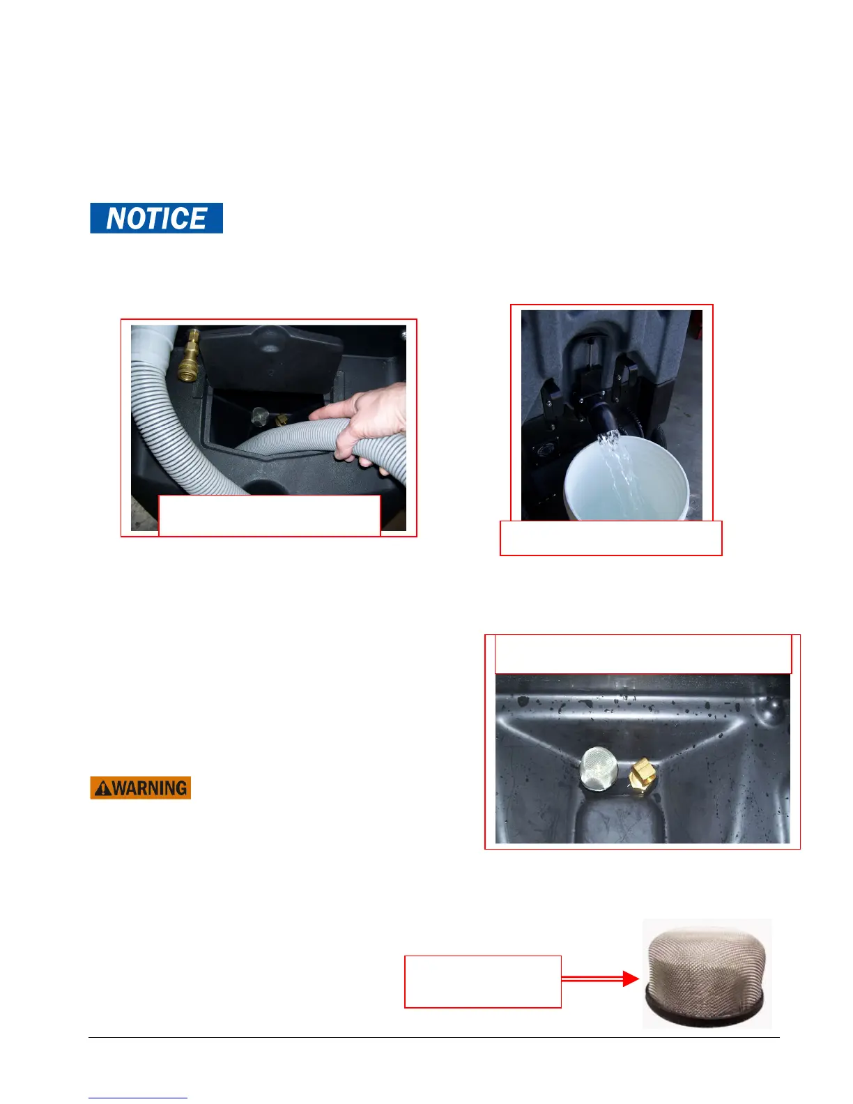 • Close the drain valve and dispose of the water.