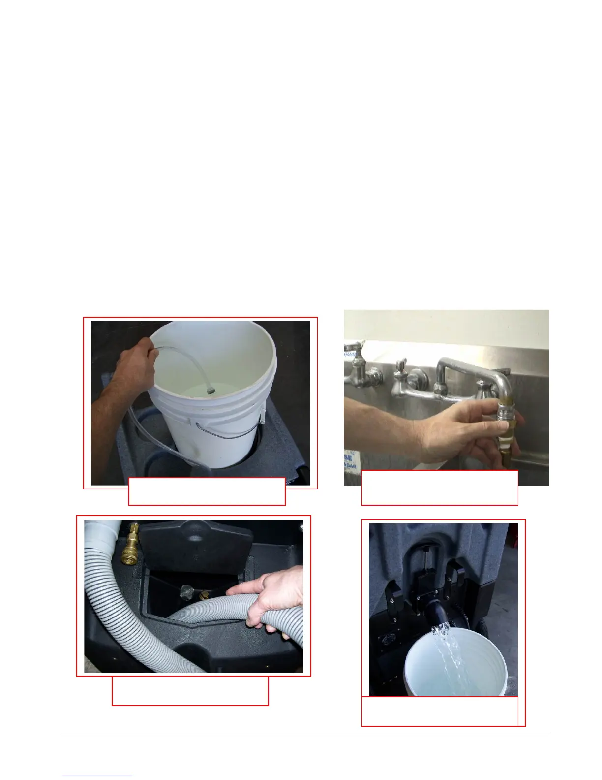 • Remove the chemical feed hose from the solution tank and place the end of the hose in a bucket of fresh