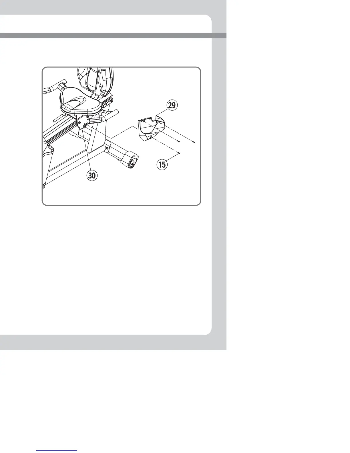 Attach the water bottle holder (29) to the seat carriage (30) using 3 – 10mm pan