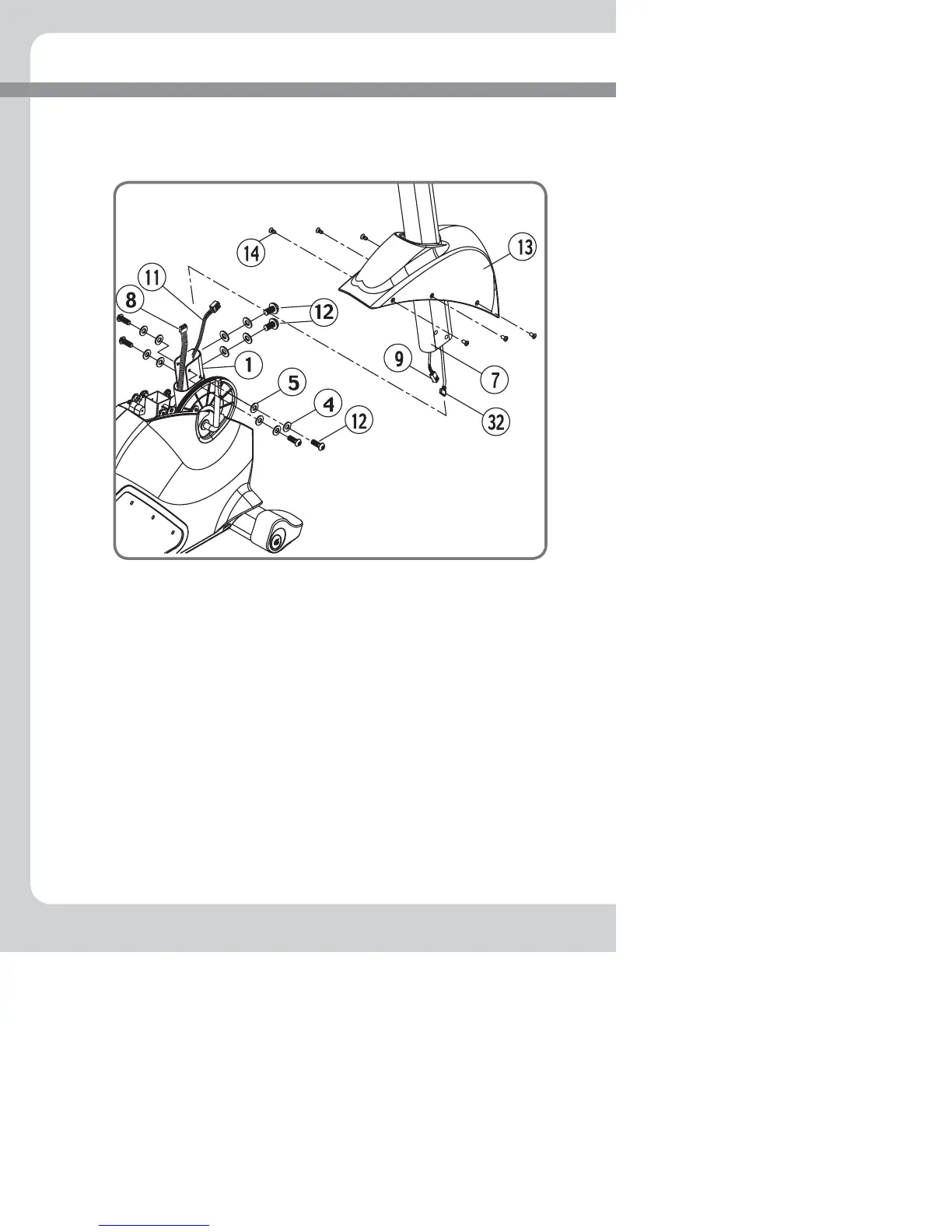 Slide the boot shroud (13) up the handlebar mast (7). This part will be secured in
