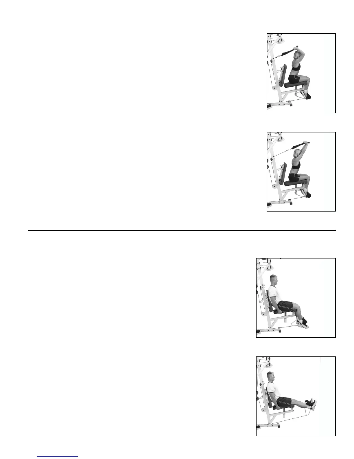 • Seated on the bench with your knees bent