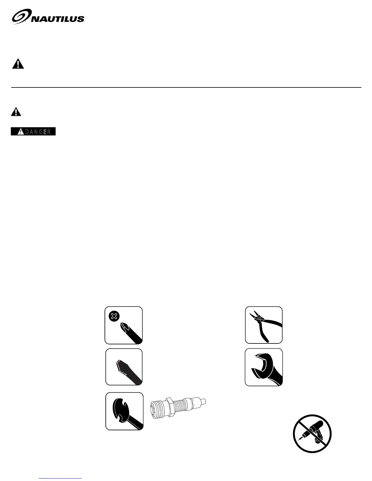 • If replacement parts are necessary, use only genuine replacement parts and hardware supplied by Nautilus. Failure to use genuine replace-