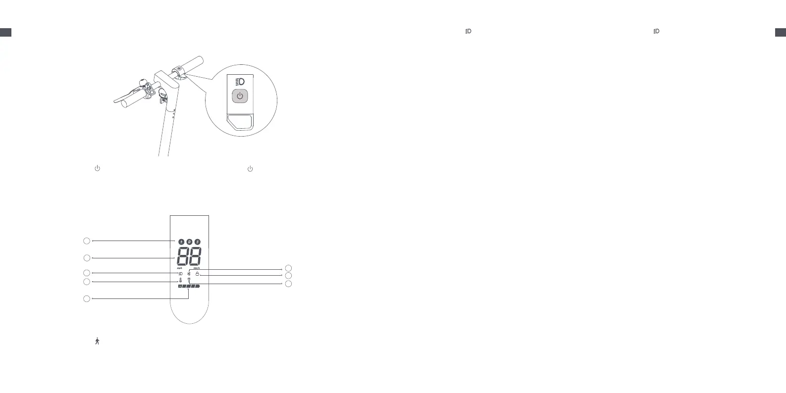 et le feu arrière sont éteints. Allumez la trottinette, et appuyez sur le bouton d’alimentation pour allumer ou