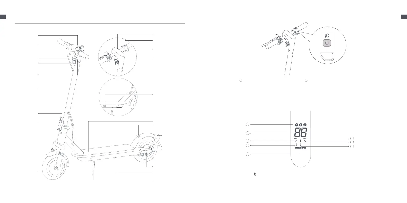 Prima o botão para ligar a trotineta e mantenha o botão premido durante 2 a 3 segundos para desligar a trotineta.
