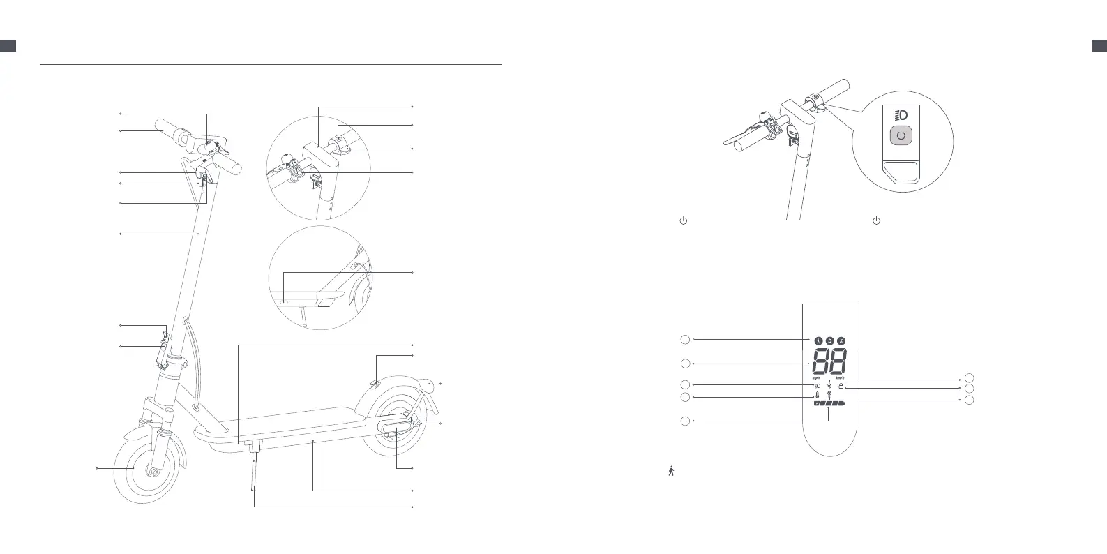 hulajnoga jest włączona, nacisnąć raz, aby włączyć/wyłączyć światło przednie i tylne, a następnie nacisnąć dwa