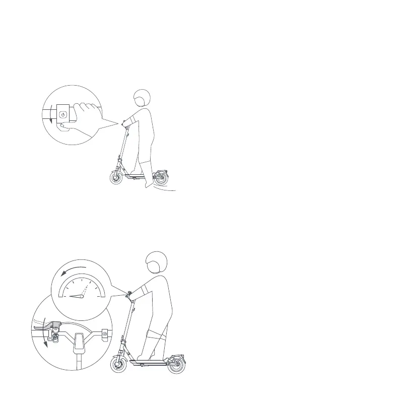 marken med den andra. När elsparkcykeln börjar rulla, sätt båda