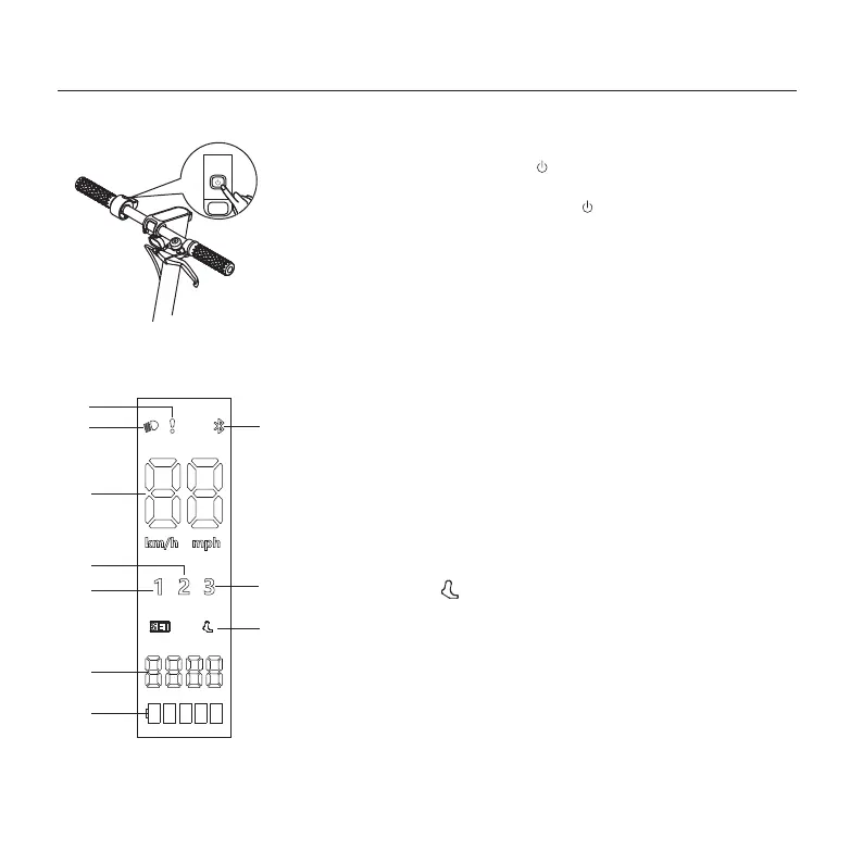 Когда скутер включен, нажмите кнопку для включения/выключения