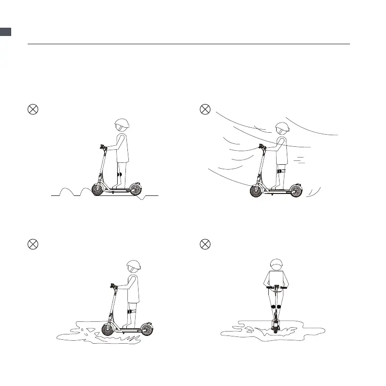 10. Do not drive the scooter in snow, rain, mud, icy, or
