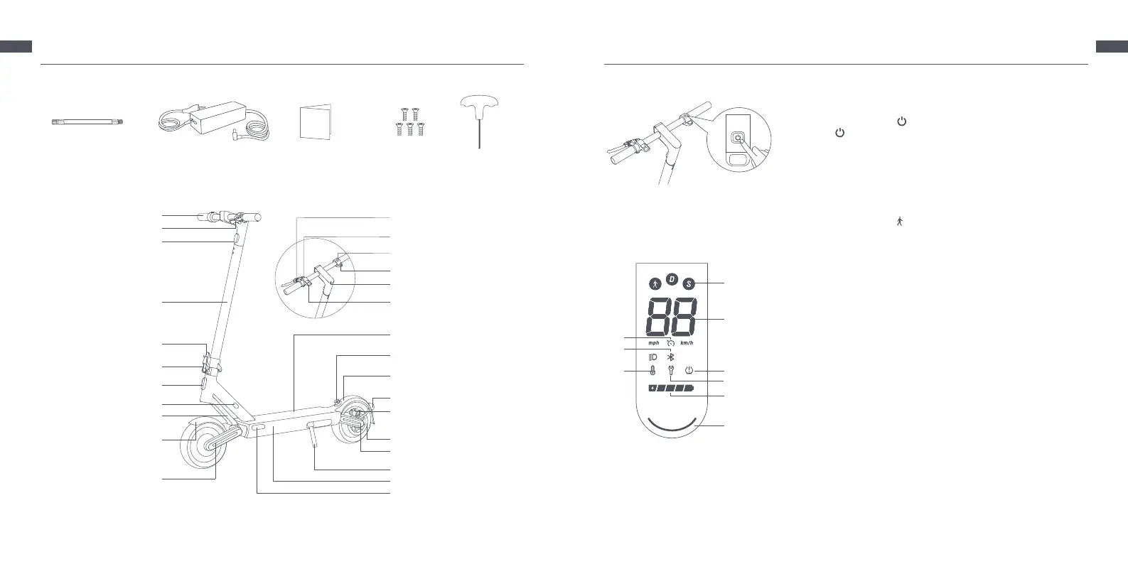 la trottinette est allumée, appuyez une fois pour allumer/éteindre le