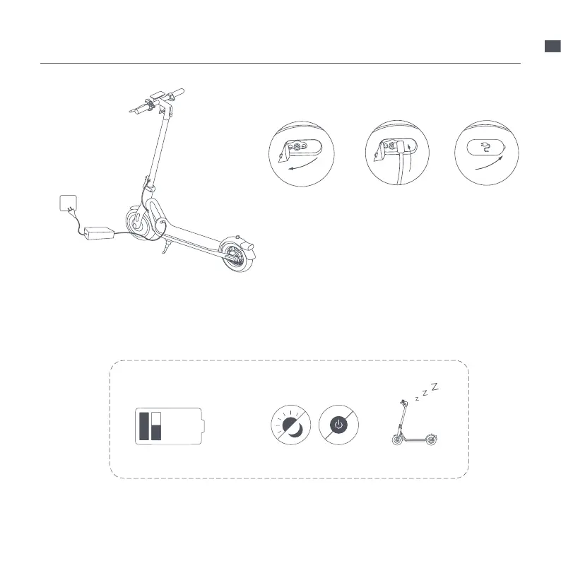 will enter sleep mode. In this case, the scooter cannot be turned on. To exit the sleep mode, charge the scooter for