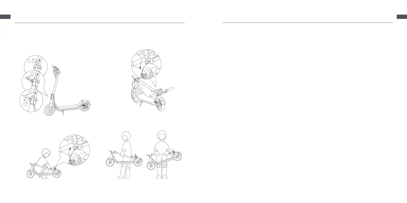Conseils de sécurité : Lorsque vous soulevez la potence de la trottinette, ne mettez JAMAIS vos mains entre les