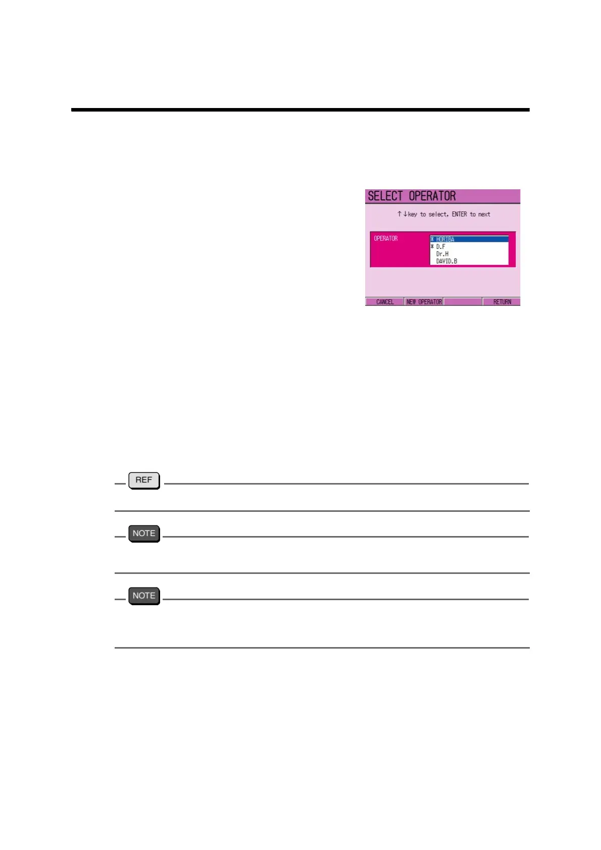 To register the new operator, refer to" ● Operator registration" page 125