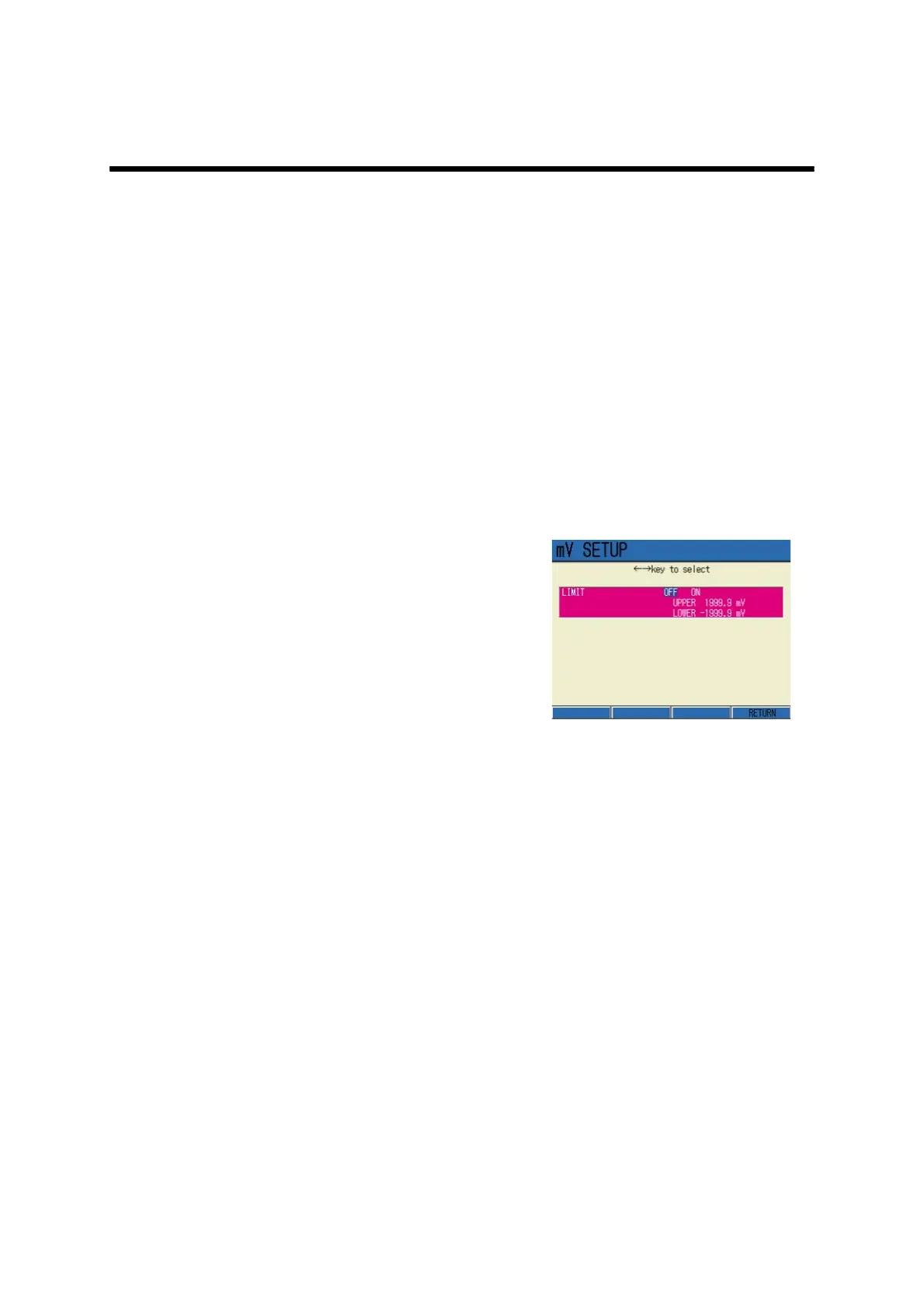 Setting range: -1999.9 to +1999.9 mV (for both upper and lower limits of the alarm)