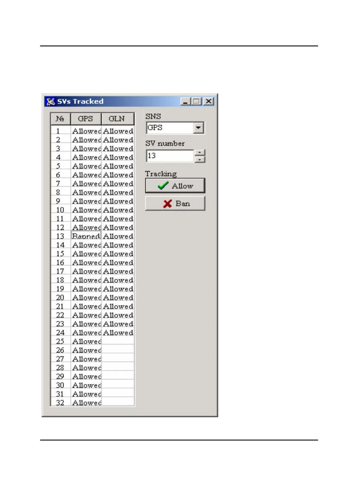 Figure IV-14 shows the SVs Tracked window.