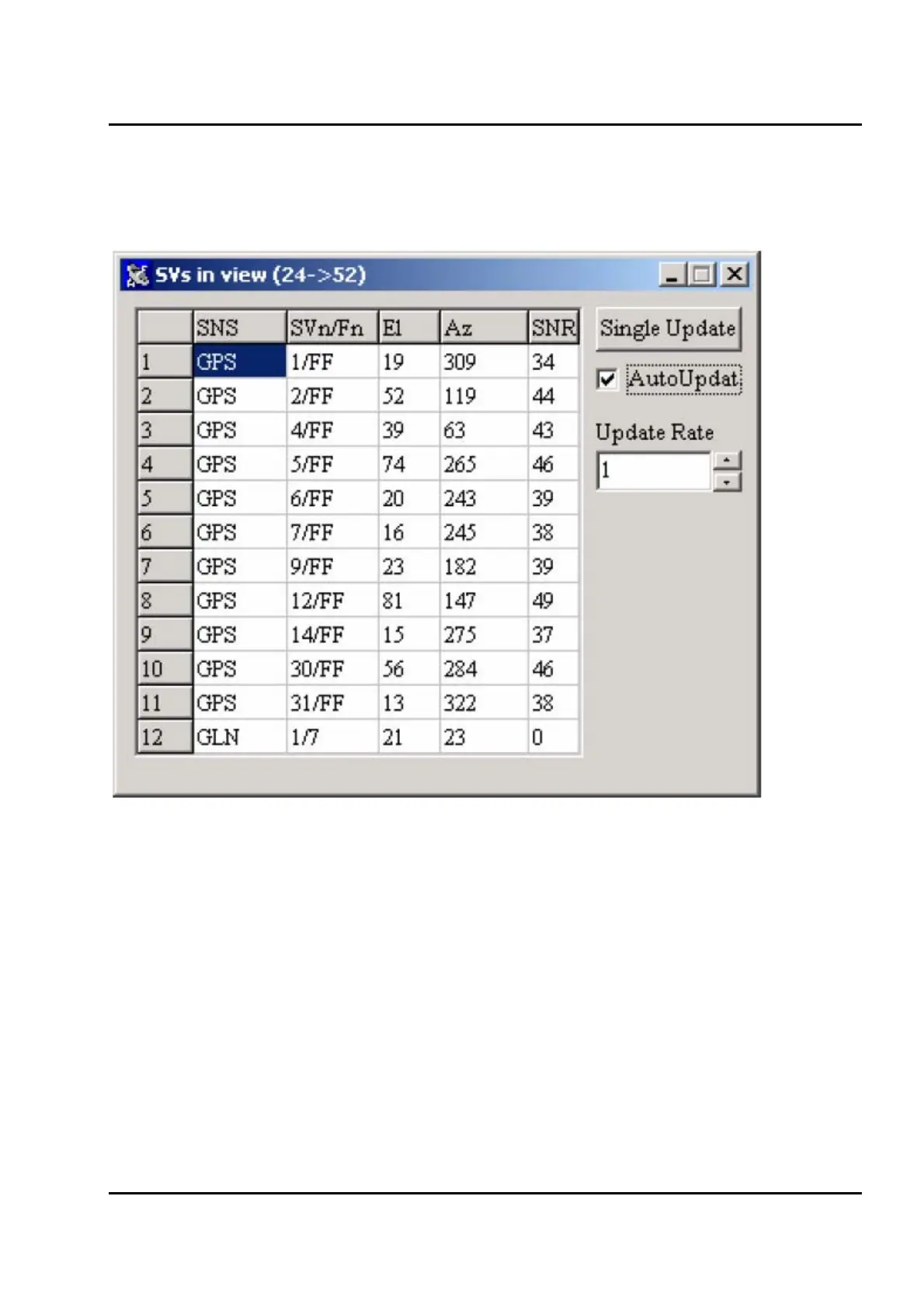 o SNR Signal Noise Ration in dB/Hz. A zero value in this column means that the corresponding SV