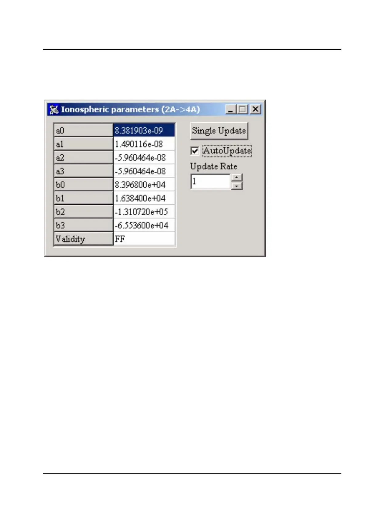 Ionospheric parameters transmitted by GPS satellites are displayed in this window. Automatic