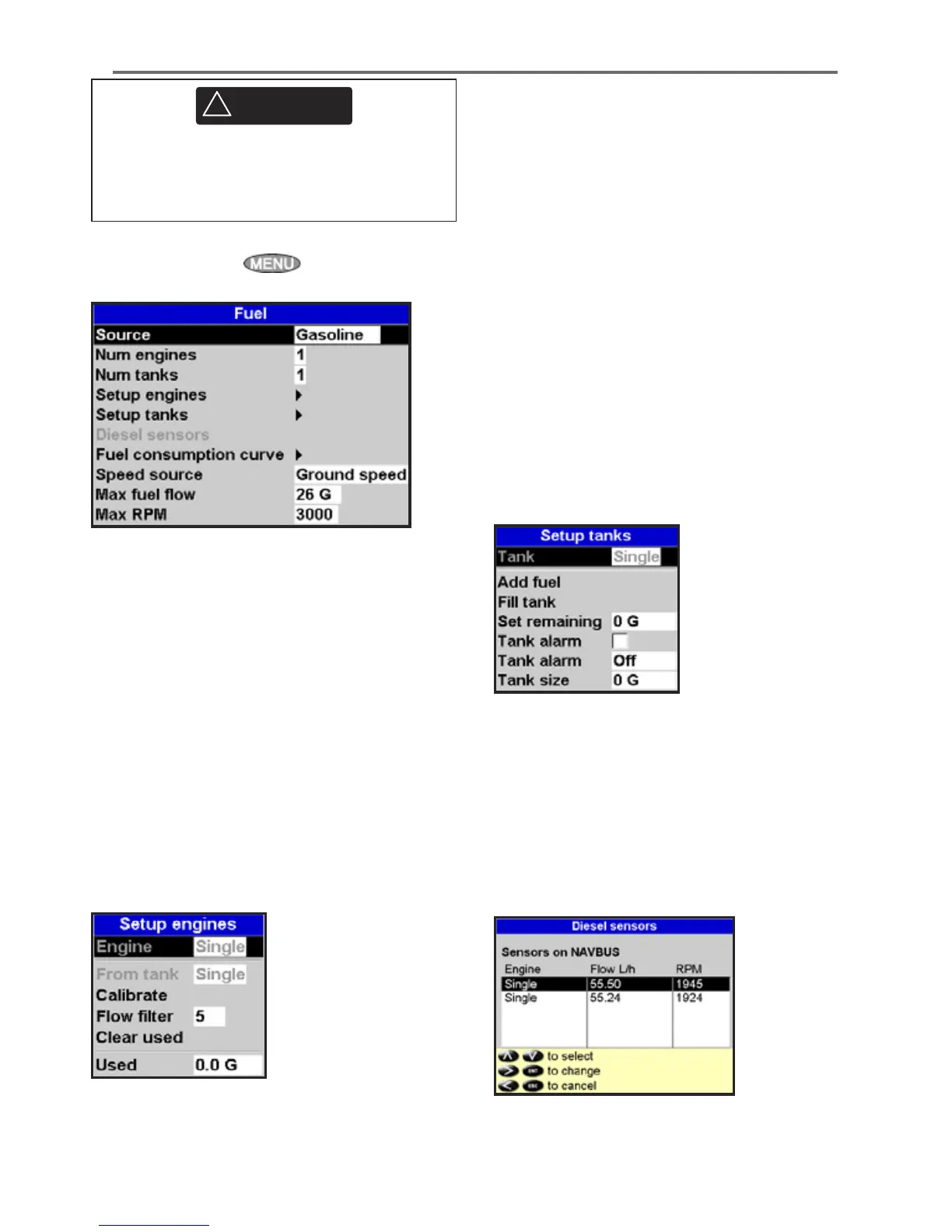 Fuel functions require optional fuel flow sensors