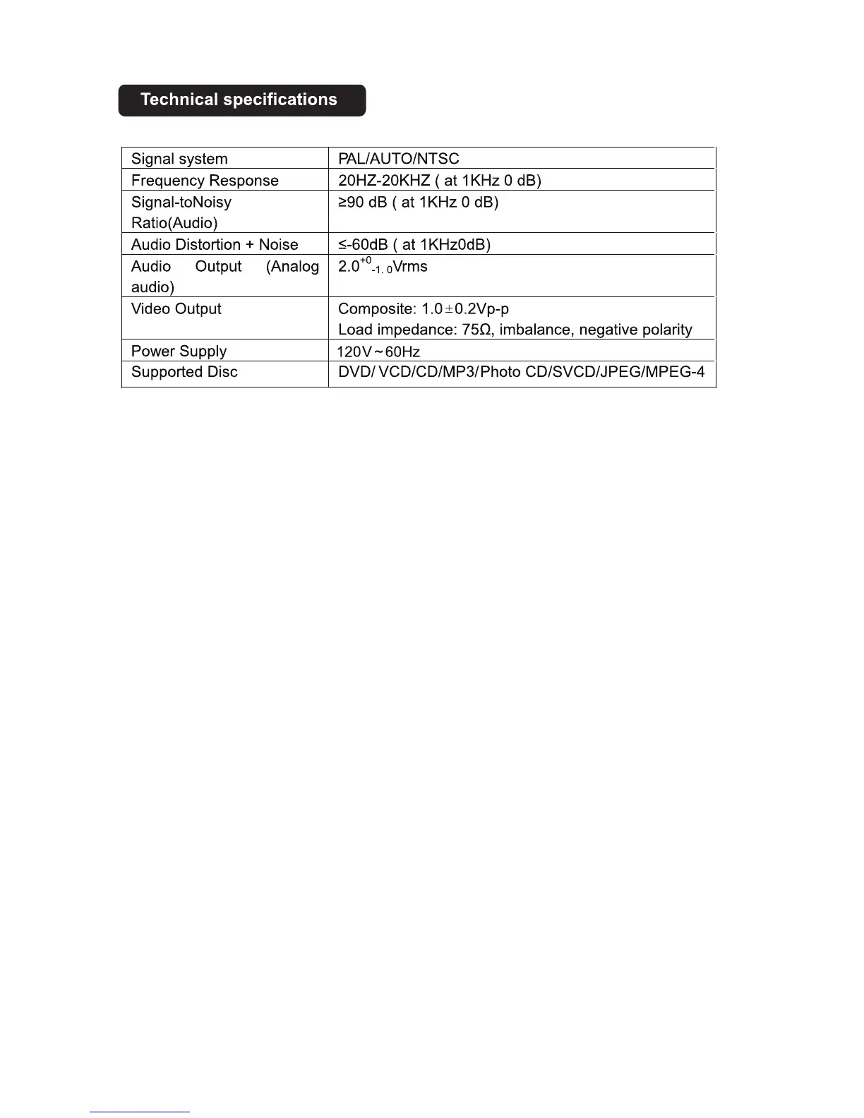 Naxa ND-856 - Technical Specifications; Product Specifications