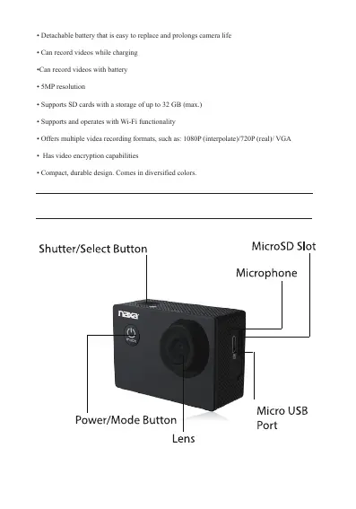 • Detachable battery that is easy to replace and prolongs camera life
