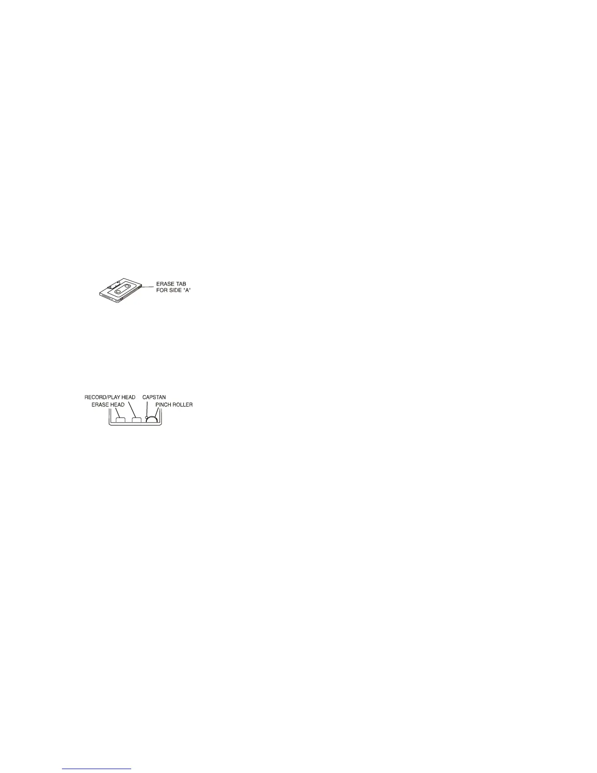 The erase head and record/play head and the surface of the pinch roller are delicate and must not be