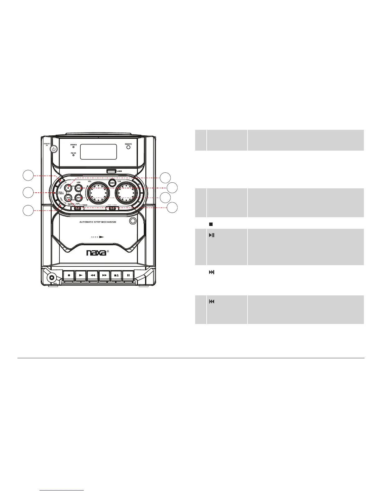 21 key Stop: Press to stop CD/MP3/USB playback.