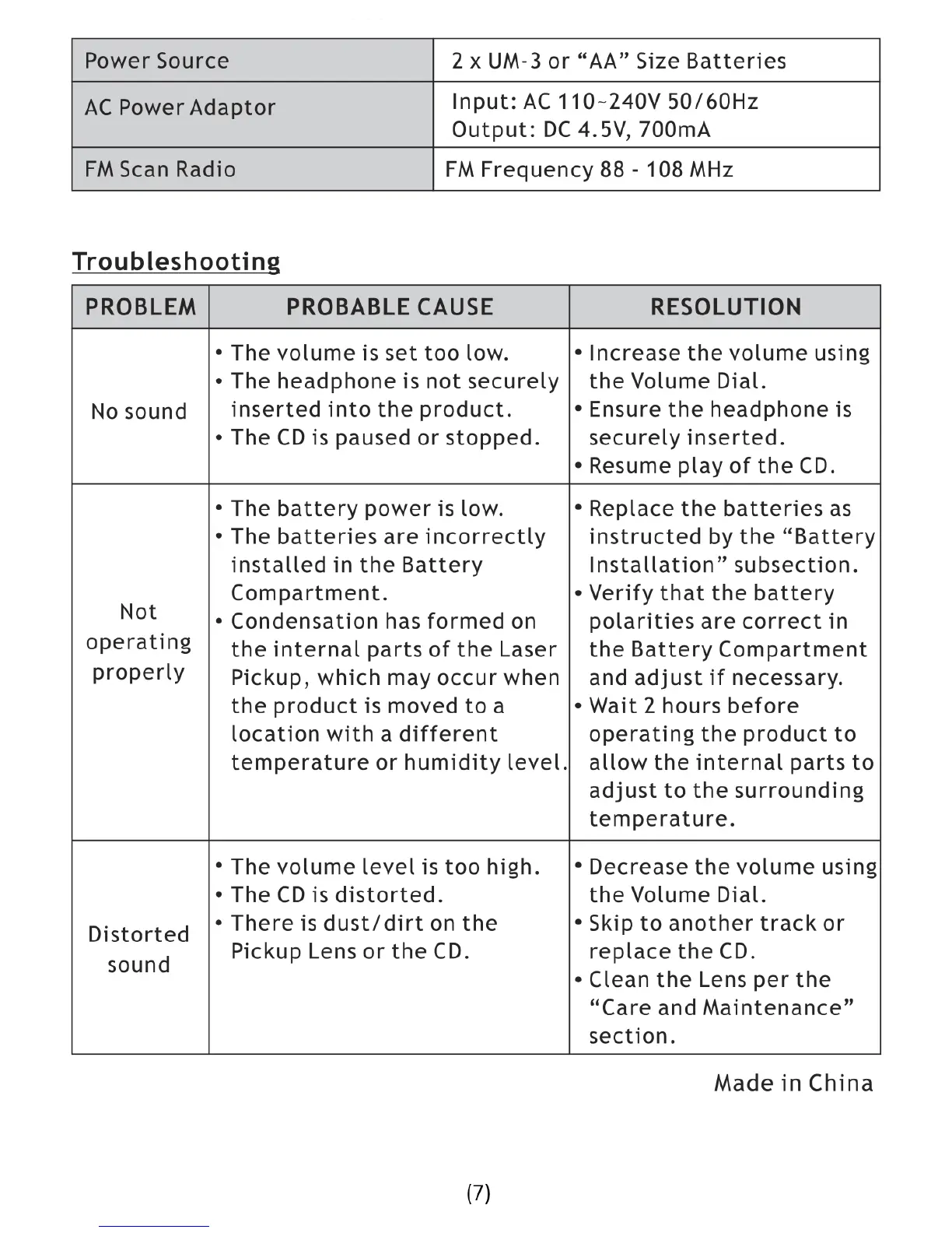 Naxa NPC-330 - Troubleshooting