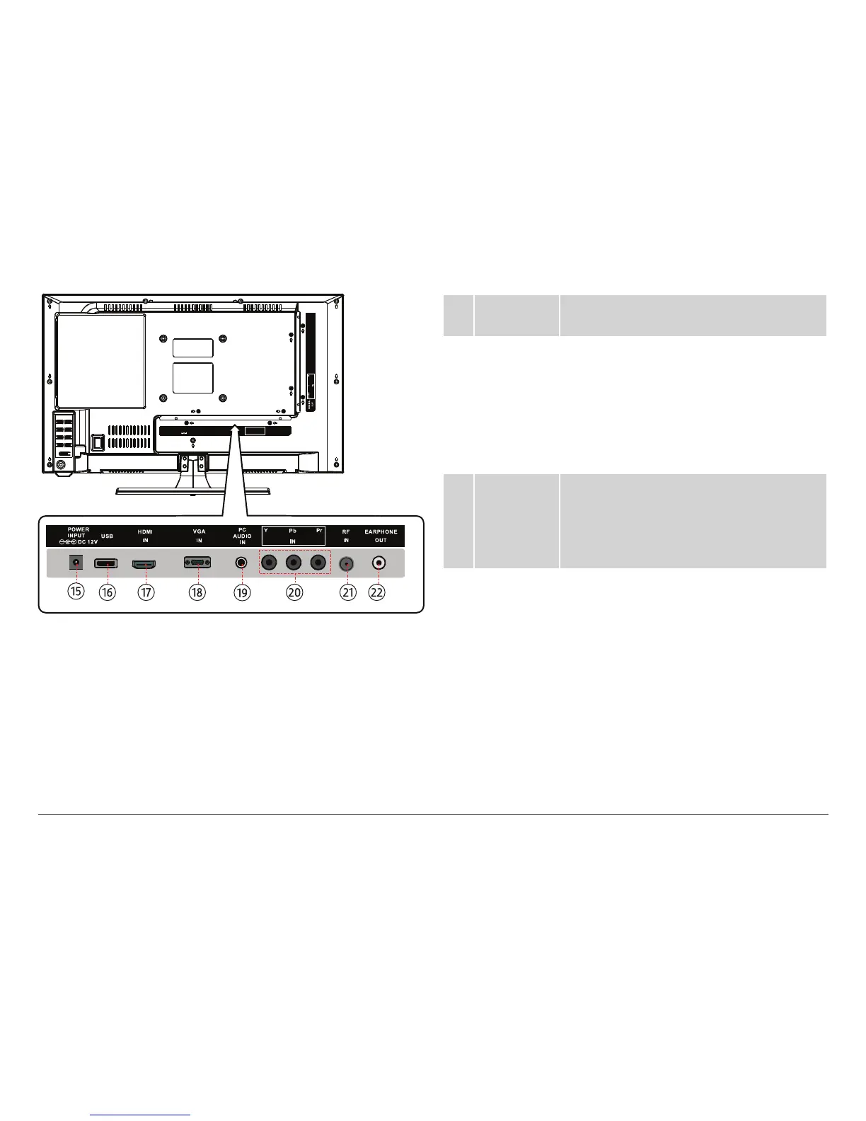 16 USB port The USB port is active when the TV is set to