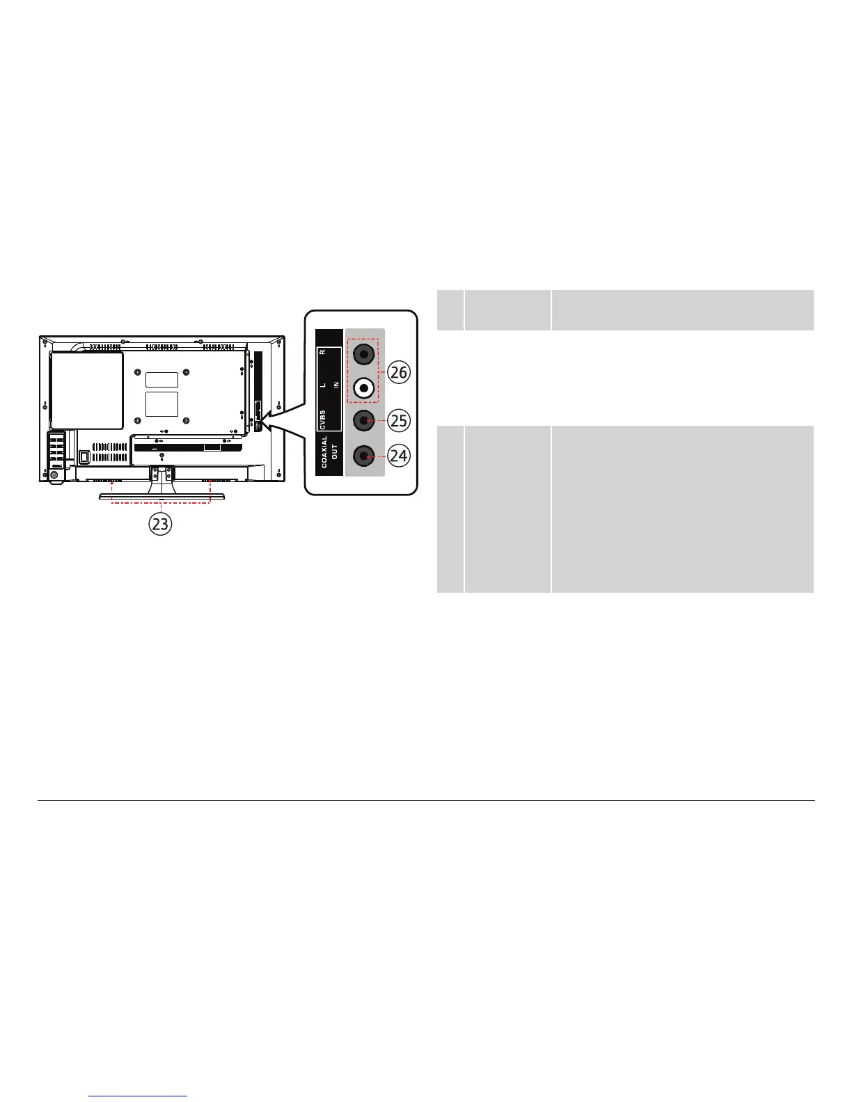 24 Coaxial Out The coaxial output is active when the TV is