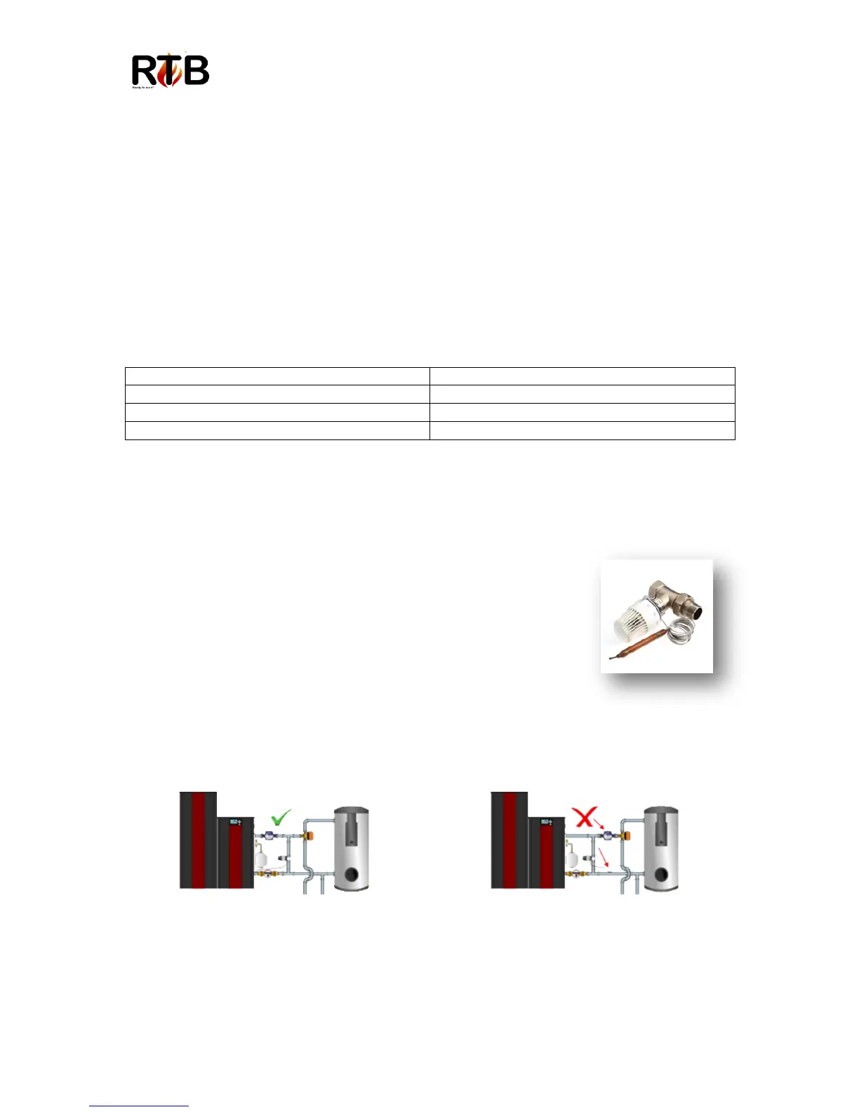The RTB range of boiler must be installed with an approved ‘shunt’ or mixing valve to