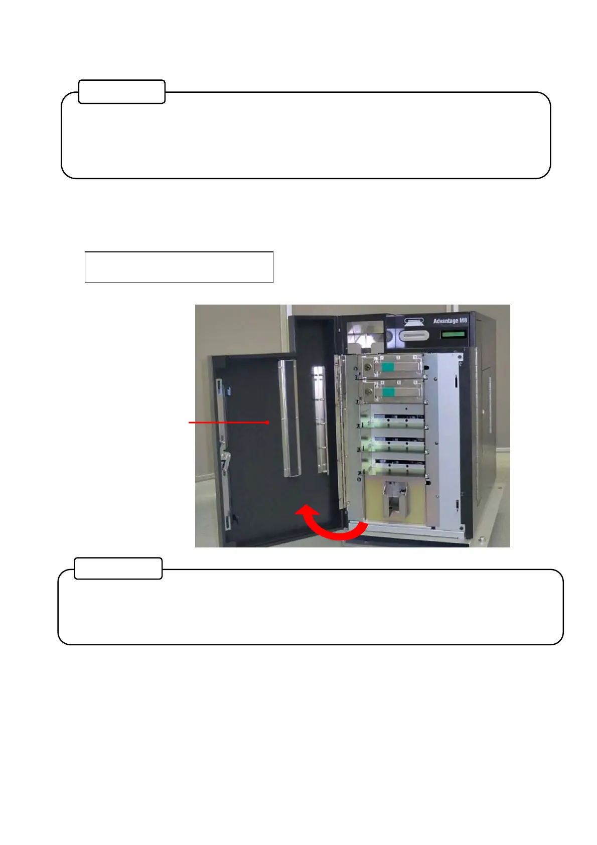 • After unlocking the electrical lock, the Front Cover must be opened promptly.