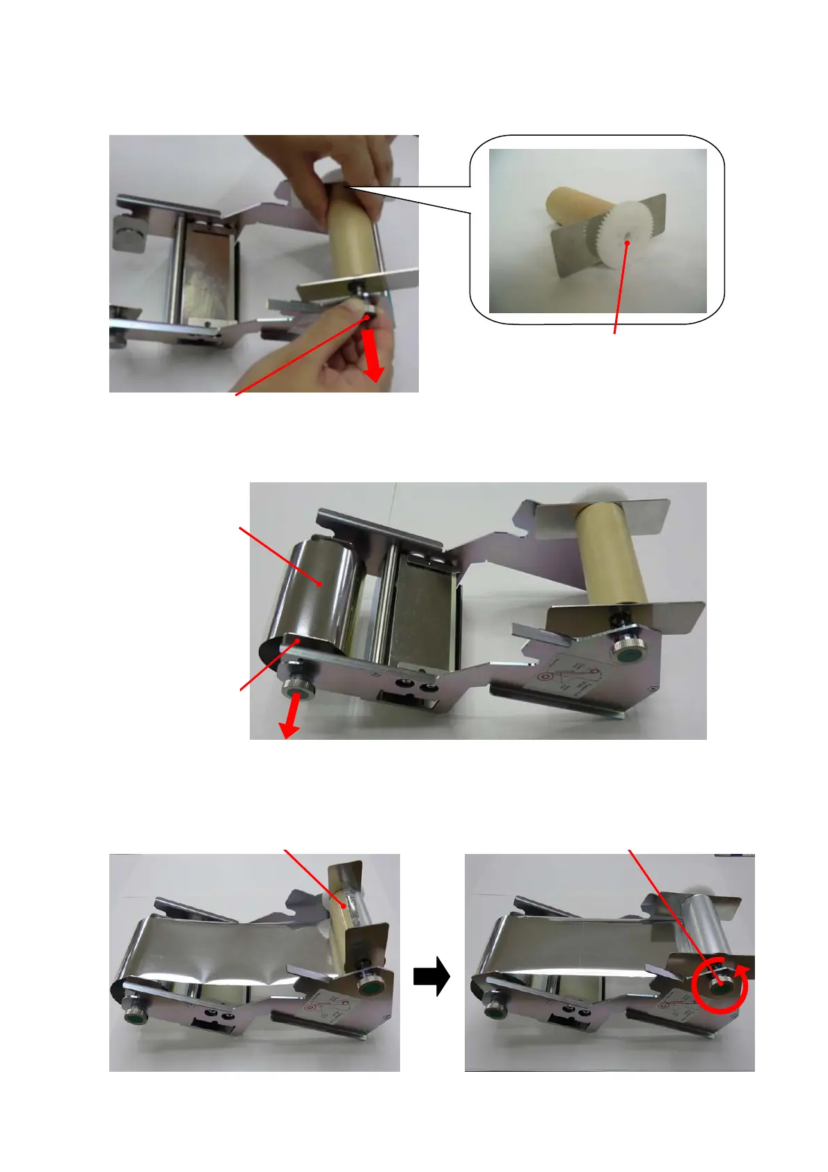 6. Insert the Tipper foil into the Unreel flange while pulling the knob in the direction of the arrow.