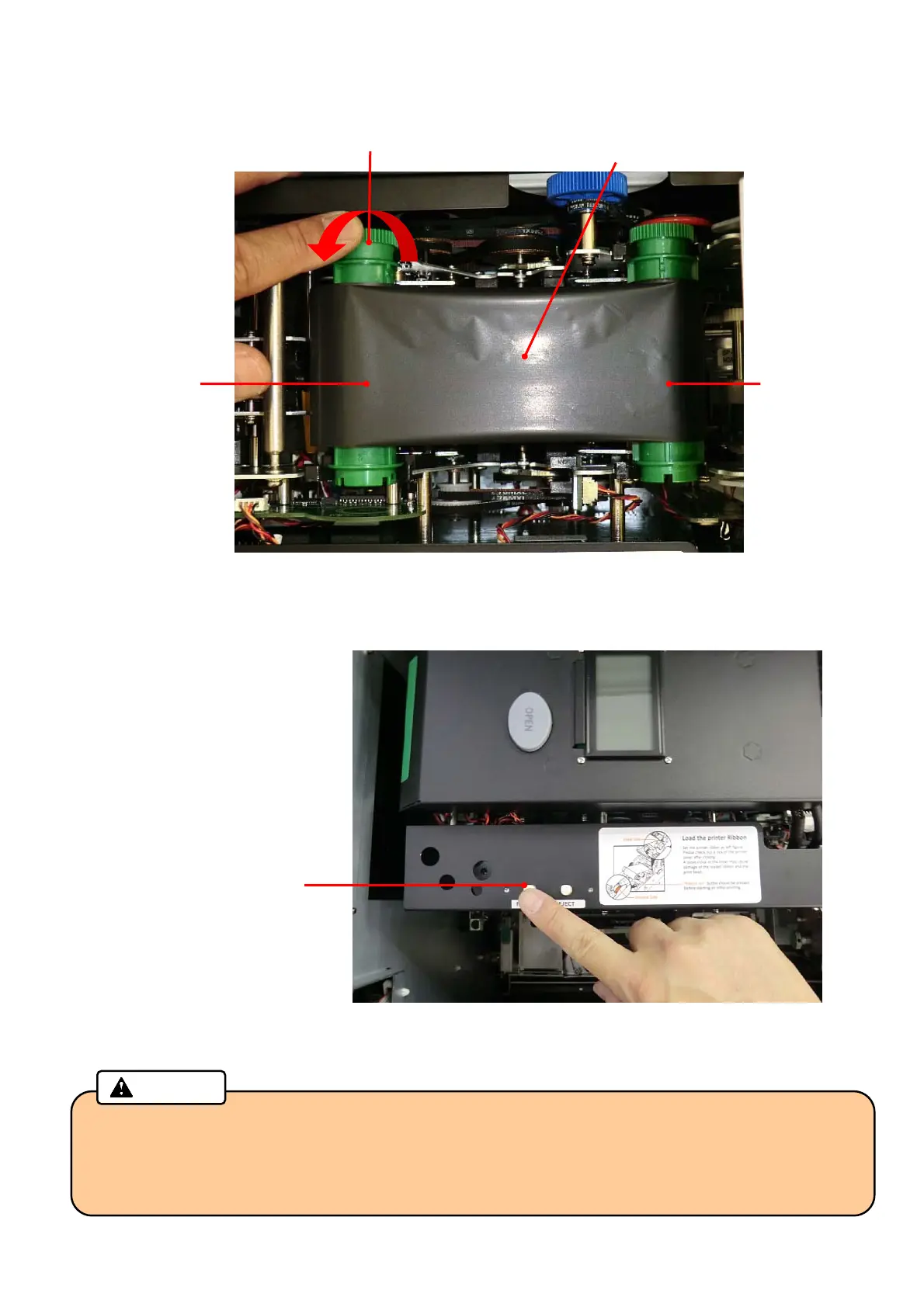 7. Reattach the Thermal Transfer Ribbon as shown in the picture below and remove the slack of the