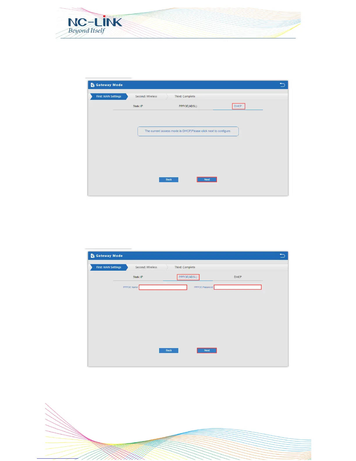 a) WAN is DHCP access type, just click Next