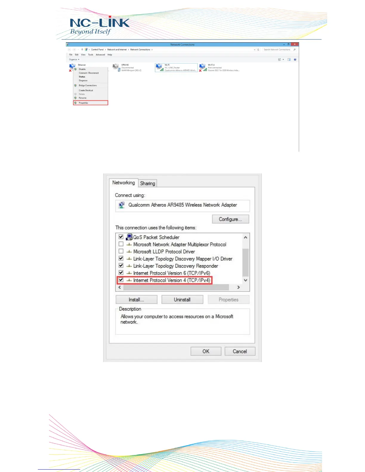 Select IPv4 and click Properties