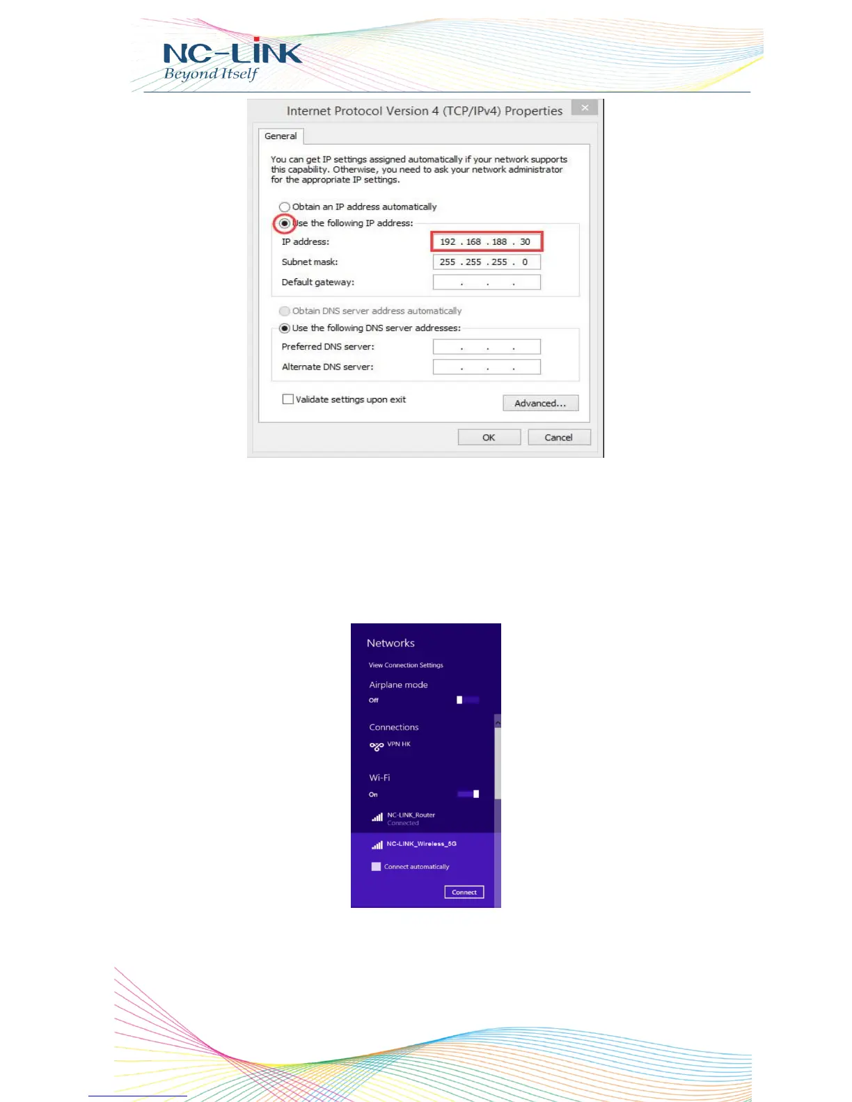 Networks, our CPE’s default SSID is NC-Link_Wireless_5G, passwords: