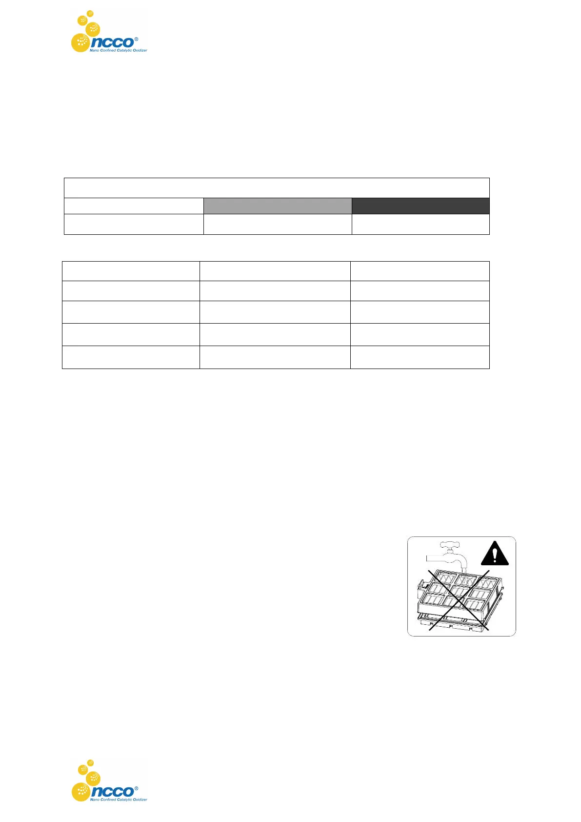 NEVER RINSE OR SOAK STATIC FILTER, HEPA FILTER OR NCCO