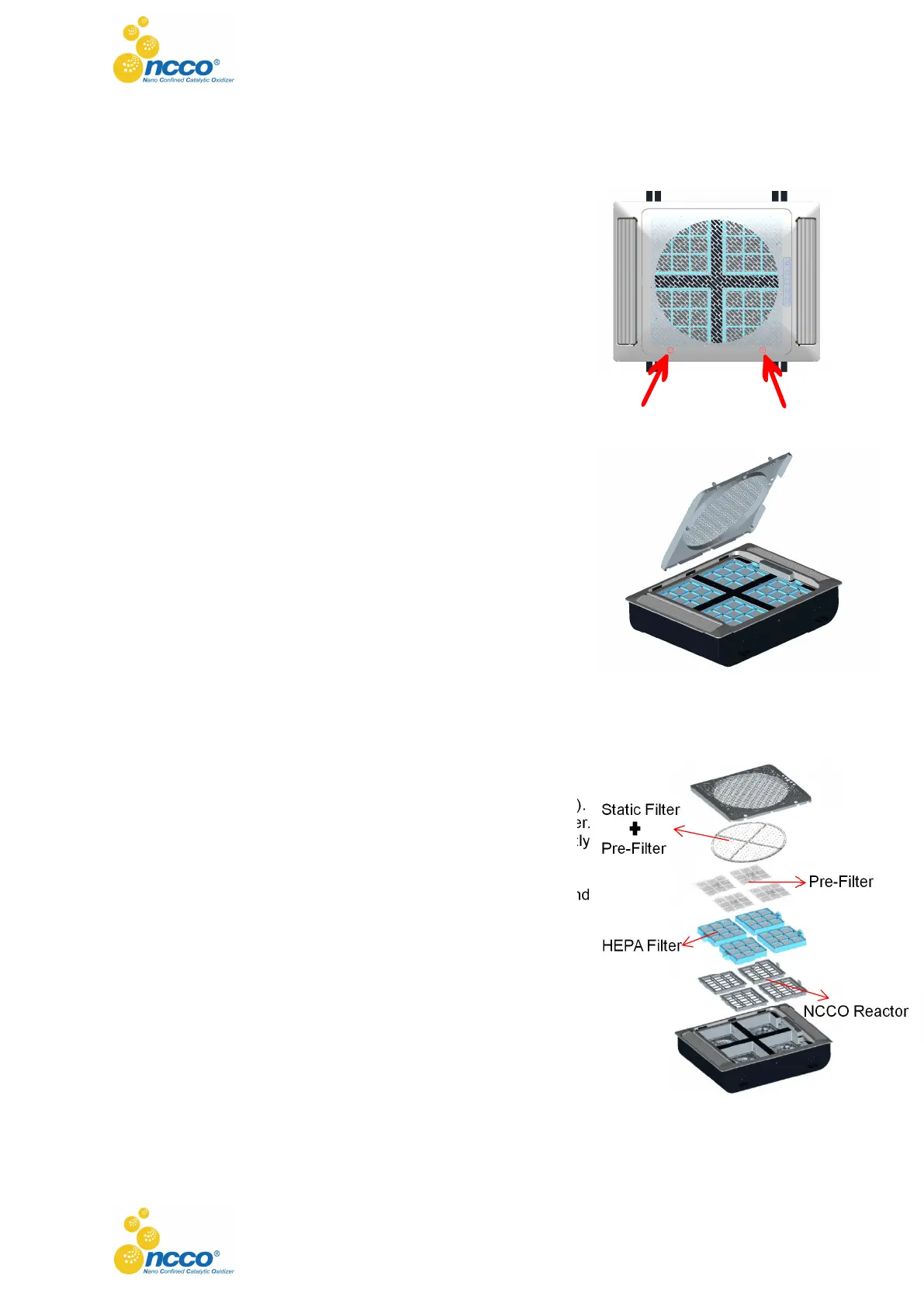 6. First install one group of filters--NCCO Reactor and HEPA Filter.