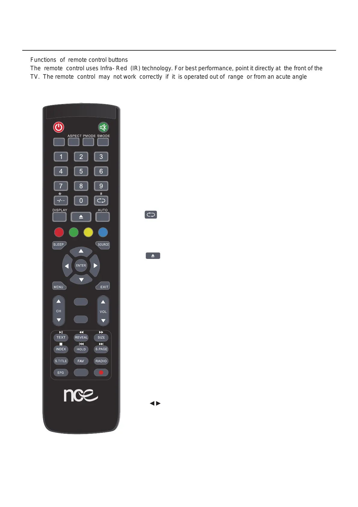 Functions of remote control buttons