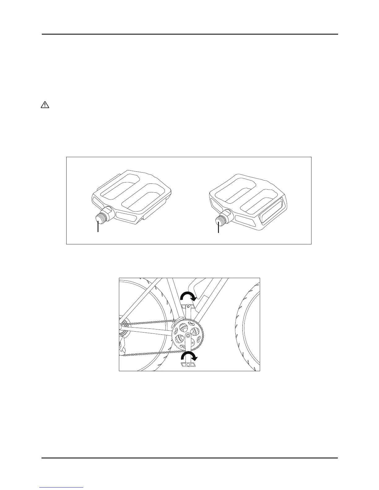 - The "R" marked pedal is for the right (when facing the forward direction). For attachment to the crank, tighten clockwise.