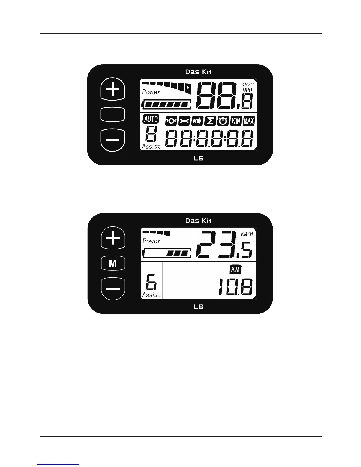The normal view area of the L6 is shown below. It indicates the current flow, remaining battery capacity, speed, PAS, and