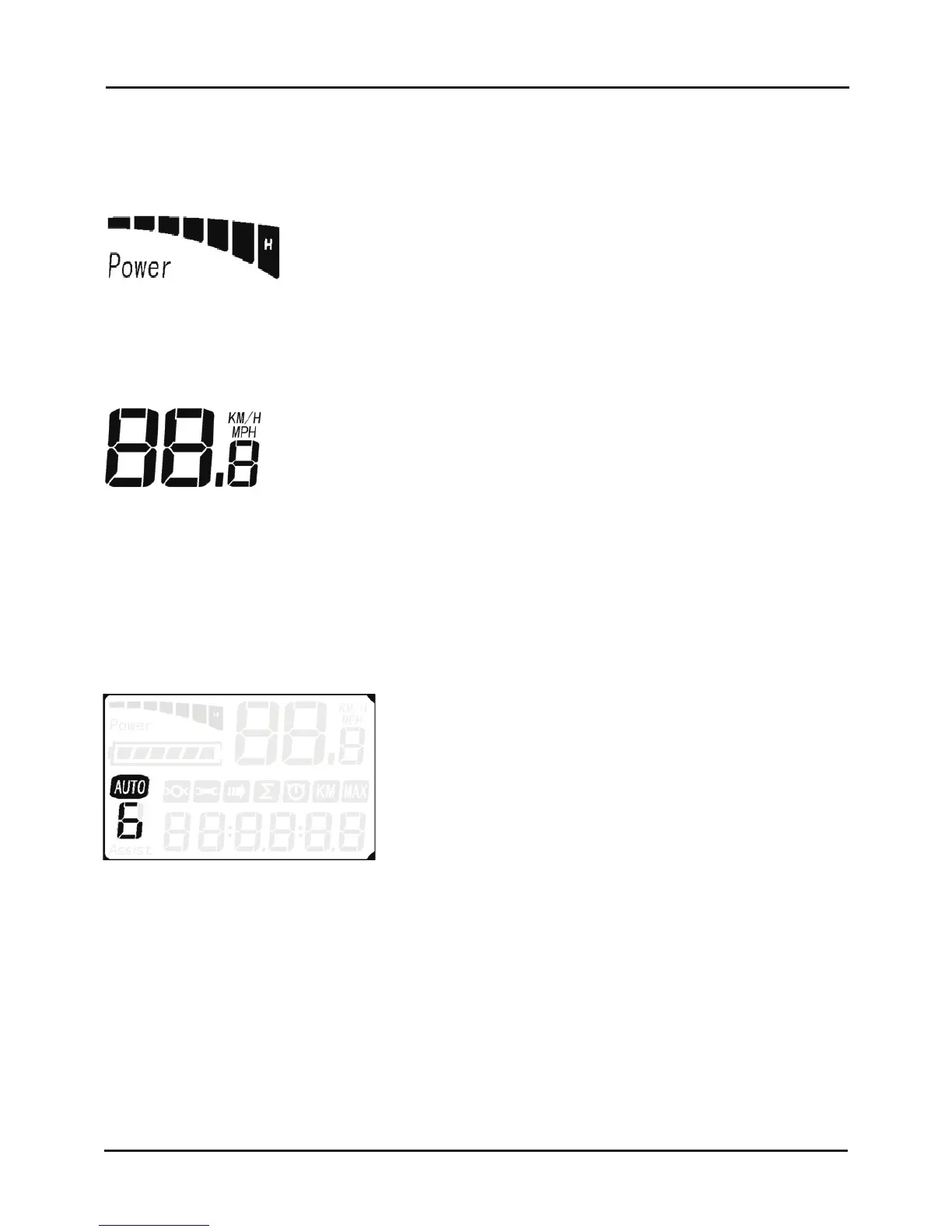 km/h without the need for the rider to pedal. Assisted walk mode will cease when the “-“ button is no longer being pressed.