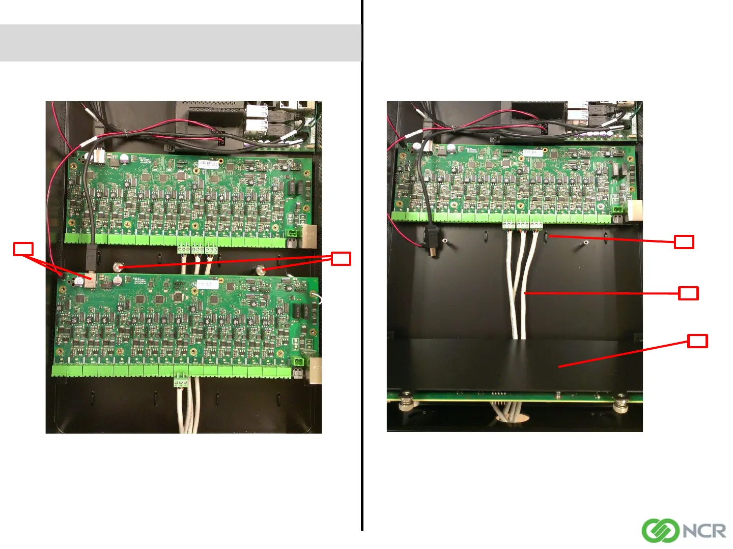 To route cables under the lower Forecourt Interface Board: