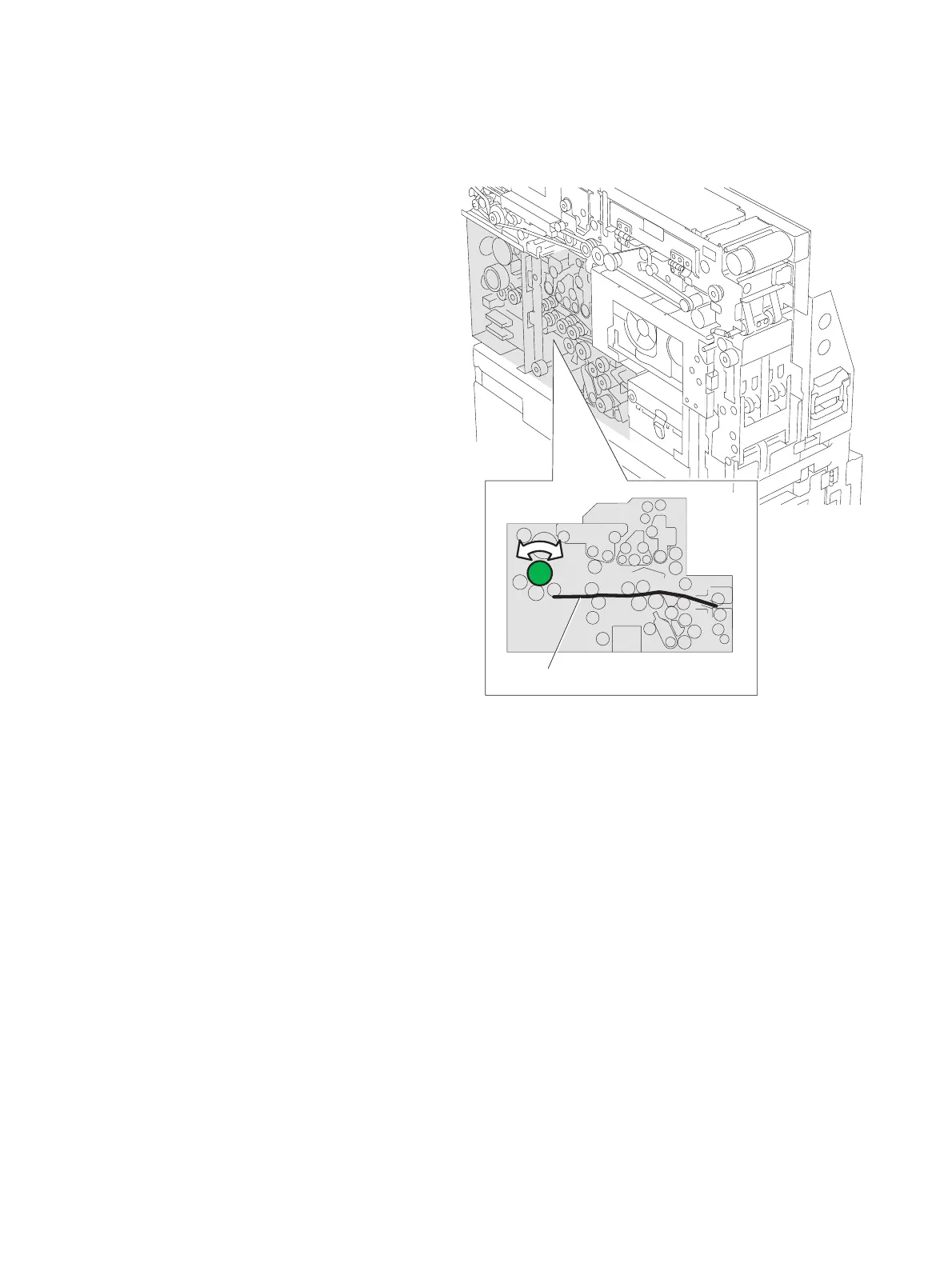 2 Turn the green knob to move the jammed cash to the area of the