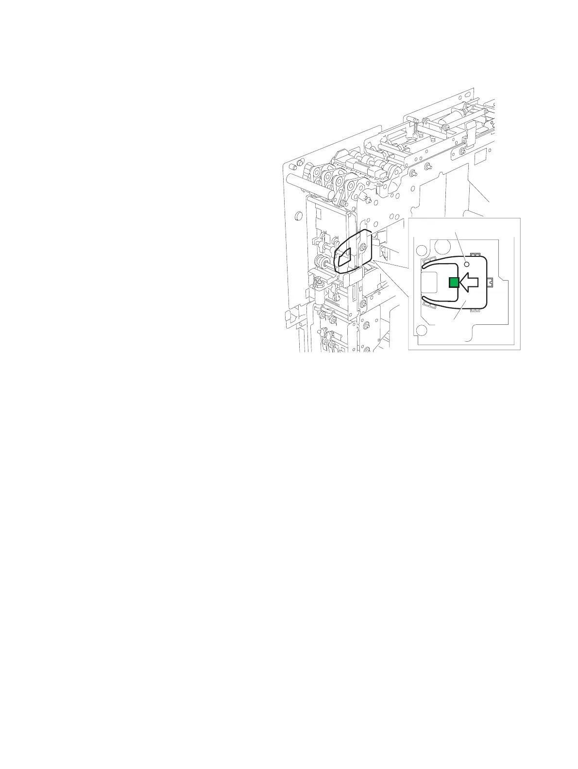 4 Push the green plastic latch left to release the ribbon cassette.