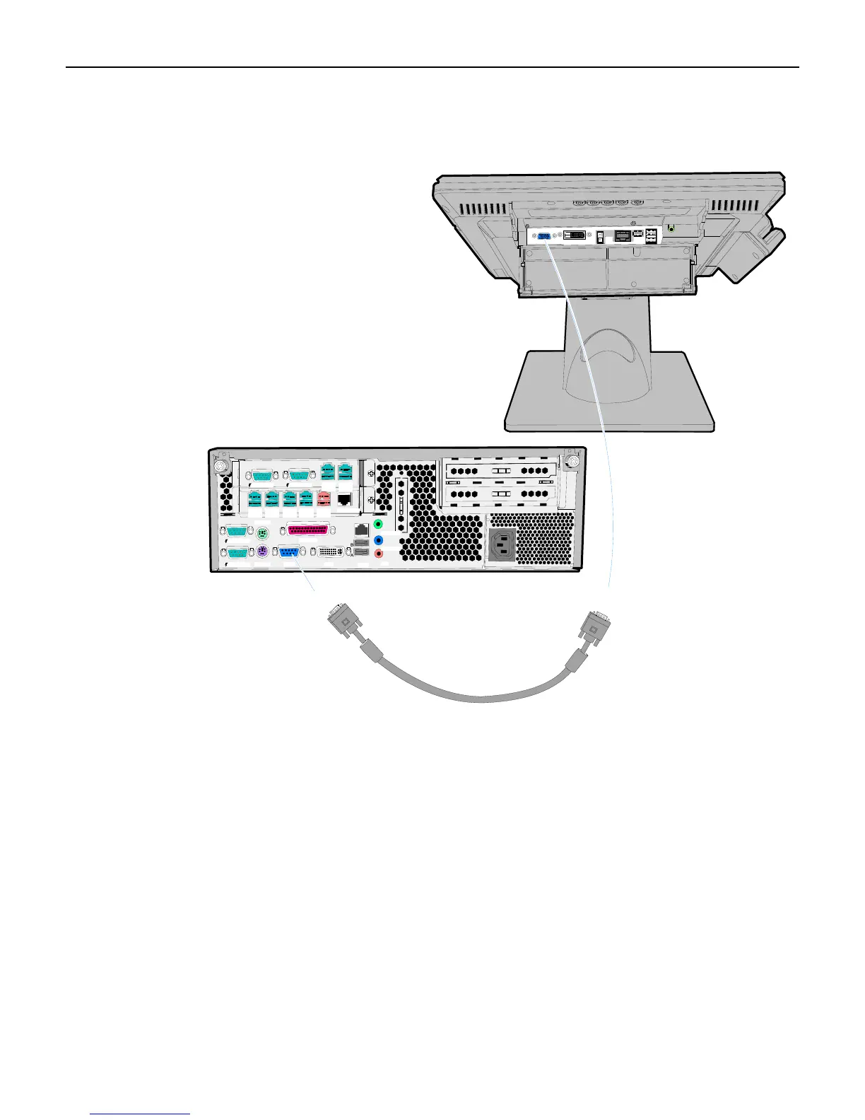 Connect the VGA Cable to the VGA connectors on both the 5965 Touch LCD and host terminal.
