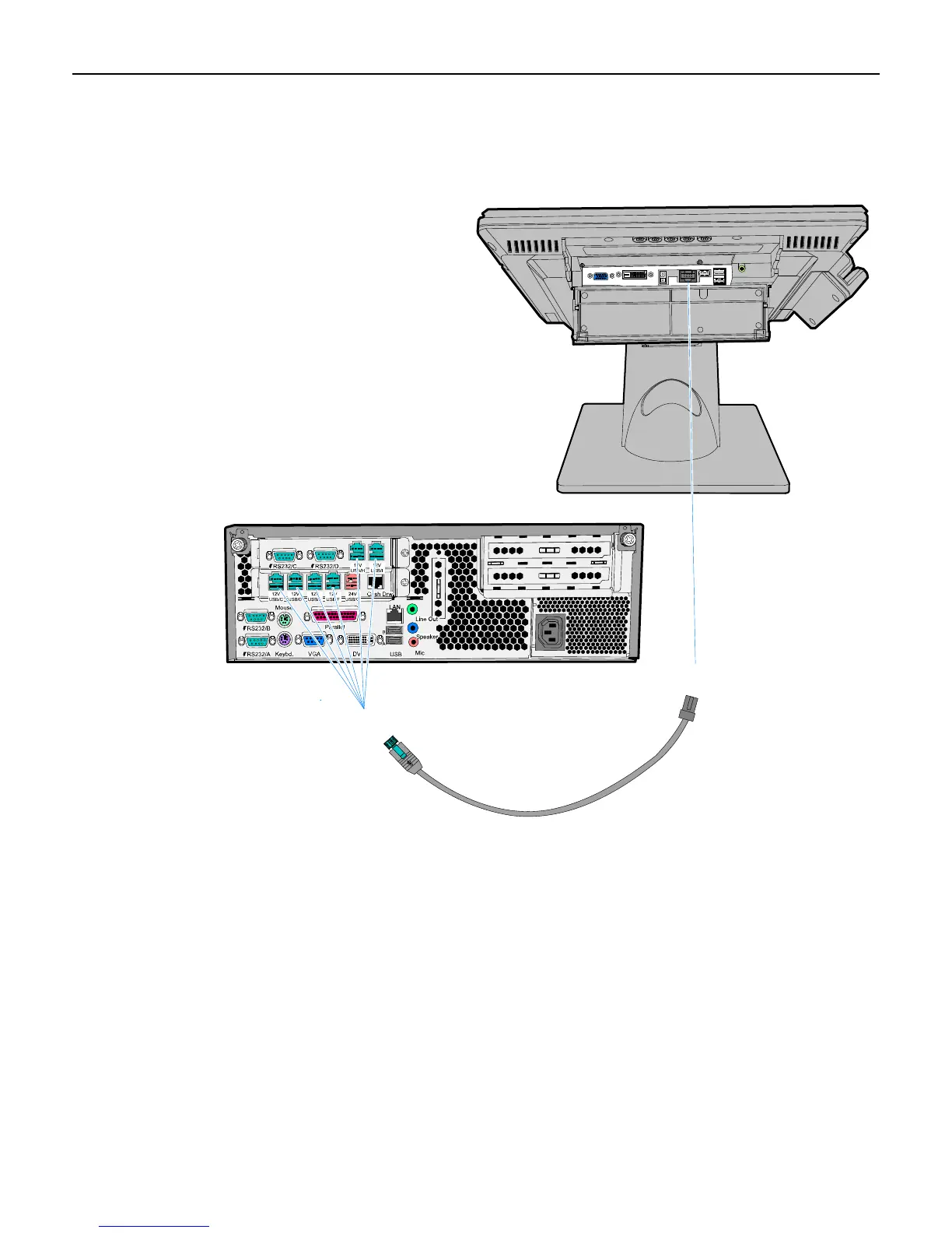 Connect the Powered USB Cable to the 5965 Touch LCD and to one of the 12V Powered USB