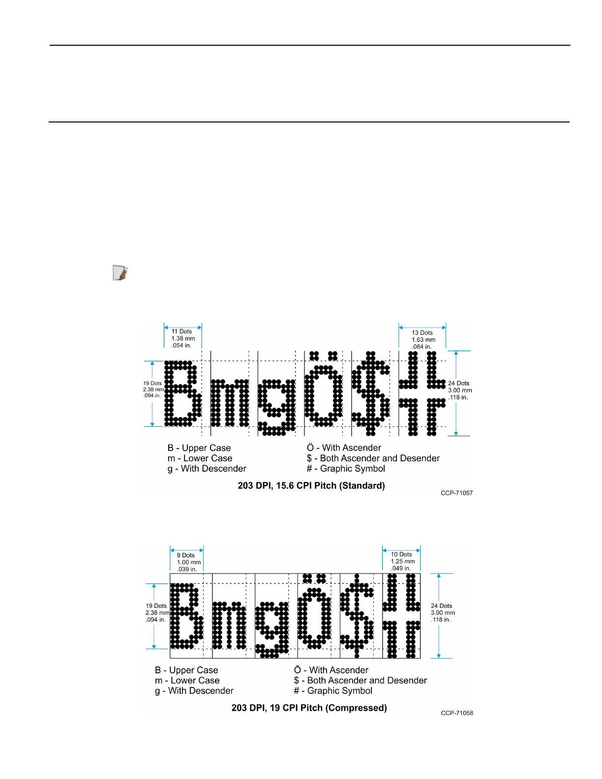 Note: Compressed pitch uses fewer dots horizontally than standard pitch.