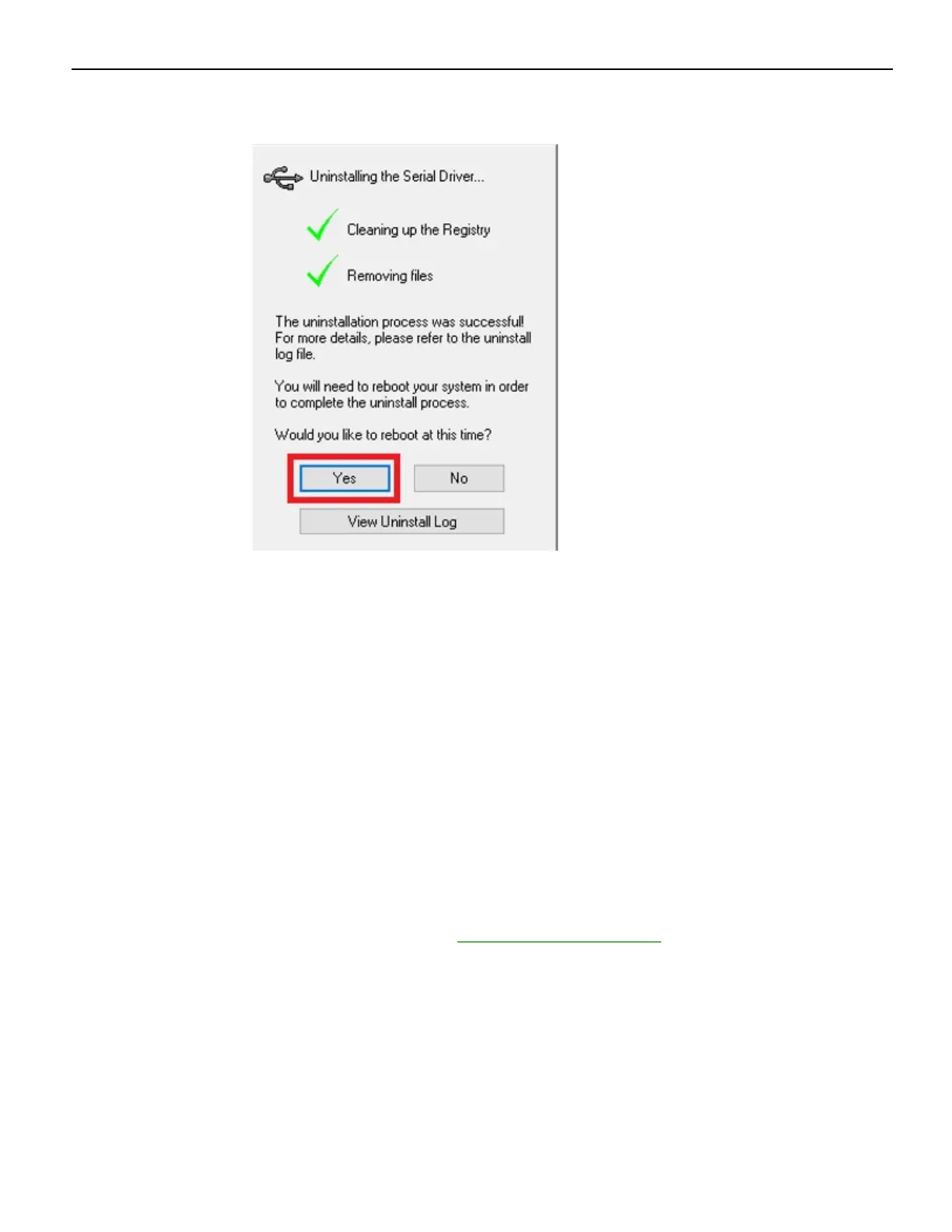 The system uninstalls the driver, and then displays the following window.